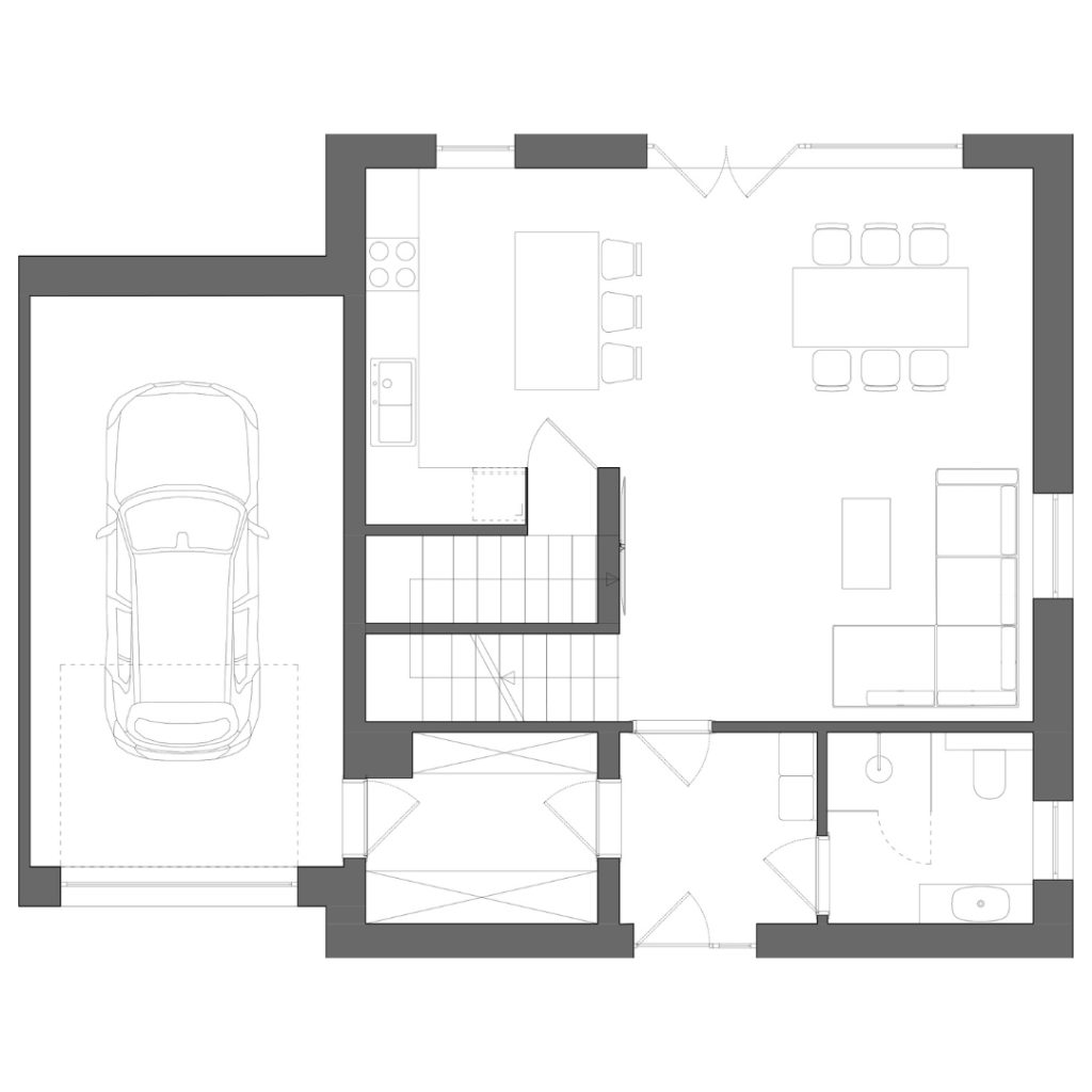 Wnętrza płynnie łączą się z ogródkami, dzięki licznym przeszkleniom, a otaczająca domy przyroda staje się naturalnym przedłużeniem salonu.